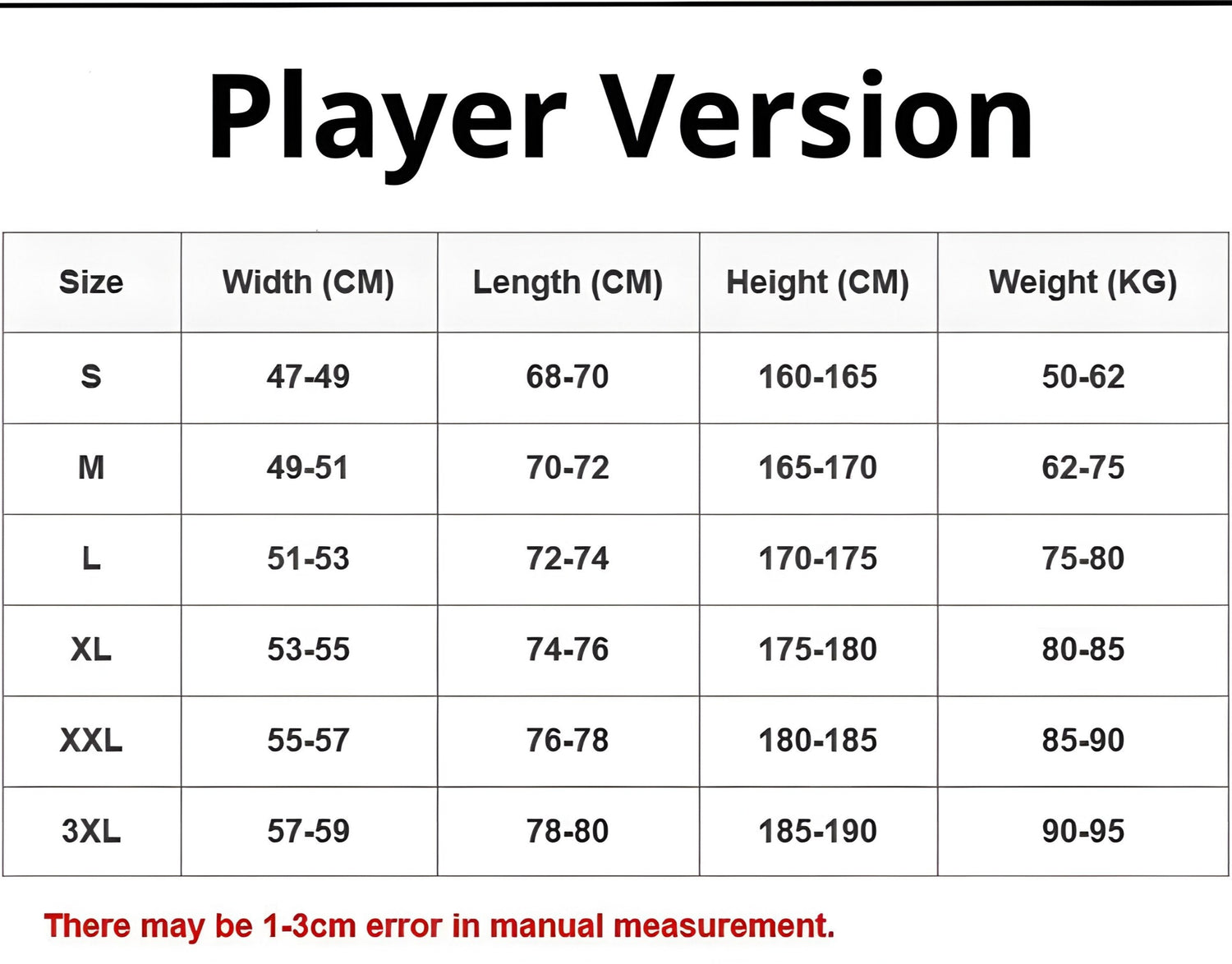 صُممت قمصان "نسخة اللاعب" بقصّة رياضية ورفيعة، تمامًا مثل تلك التي تُلبس في الملعب. فهي أضيق حول الصدر والذراعين مقارنةً بقمصان "نسخة المشجعين". إذا كنت تفضل قصّةً أكثر راحةً، فننصحك باختيار مقاس أكبر بدرجة واحدة.