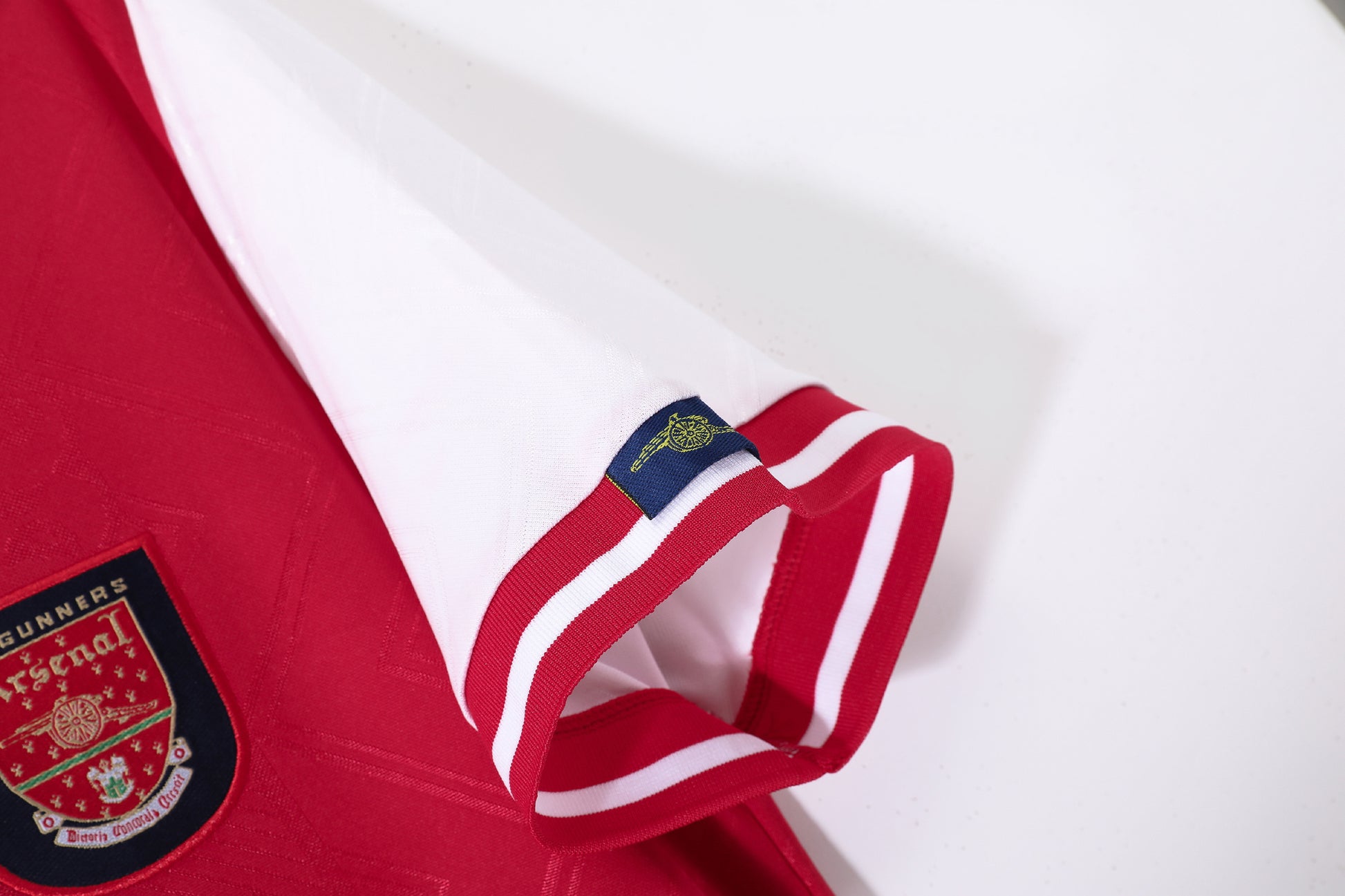 The Arsenal 1996/97 home kit, produced by Nike, is a classic red shirt with white sleeves, featuring the iconic JVC sponsor across the chest, the Nike swoosh, and the Arsenal crest. Worn during a transitional season marking the start of Arsène Wenger’s era, this durable and stylish jersey was donned by stars like Dennis Bergkamp, Ian Wright, Patrick Vieira, and Ray Parlour. Its simple yet timeless design captured Arsenal’s traditional home colors while providing comfort and performance on the pitch. Fans remember it for its association with key matches of the season and the emergence of a new chapter in the club’s history.