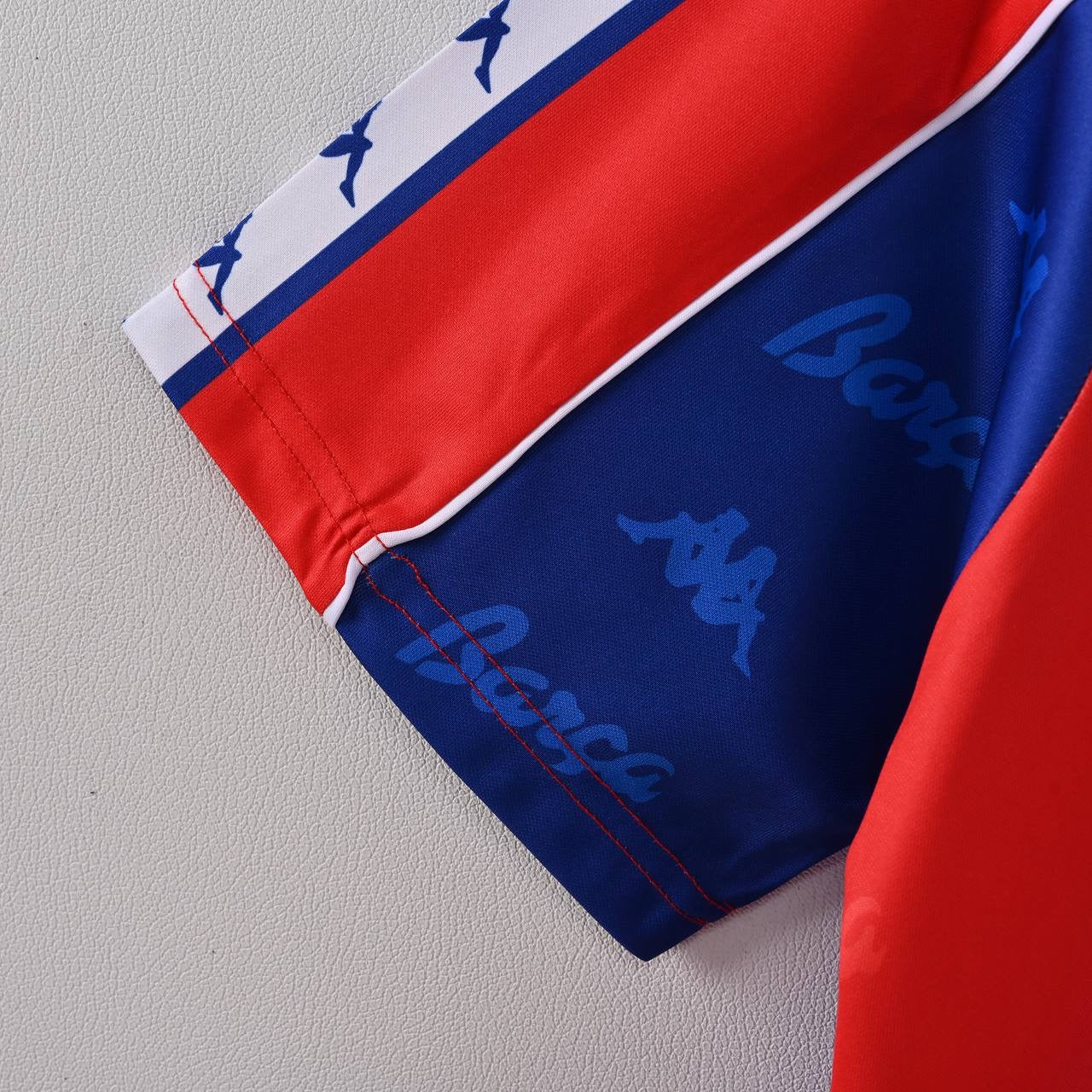 The 1996/97 Barcelona Home Retro shirt celebrates a classic era for the Blaugrana. Featuring the iconic blue and garnet stripes with vintage detailing, this design reflects the flair and passion synonymous with Barcelona football. Crafted with authentic colors and styling, it’s a must-have for dedicated fans and collectors alike. Perfect for honoring the club’s rich history, this jersey combines timeless football tradition with unmistakable Catalan pride.