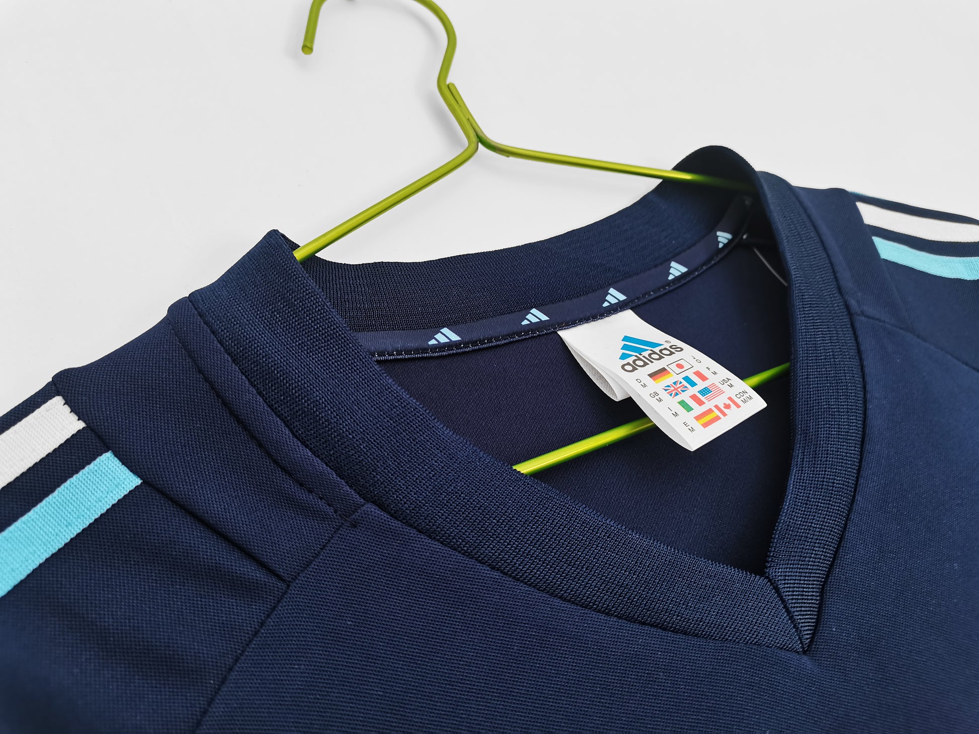 The 2002 away kit features a striking dark blue design with subtle light blue accents, providing a modern contrast to Argentina’s traditional home stripes. Worn by stars like Juan Sebastián Verón, Gabriel Batistuta, and Ariel Ortega, this jersey accompanied the Albiceleste during the 2002 FIFA World Cup in South Korea and Japan, where Argentina was eliminated in the group stage. Its sleek design and World Cup history make it a collectible piece for fans of Argentina kits.