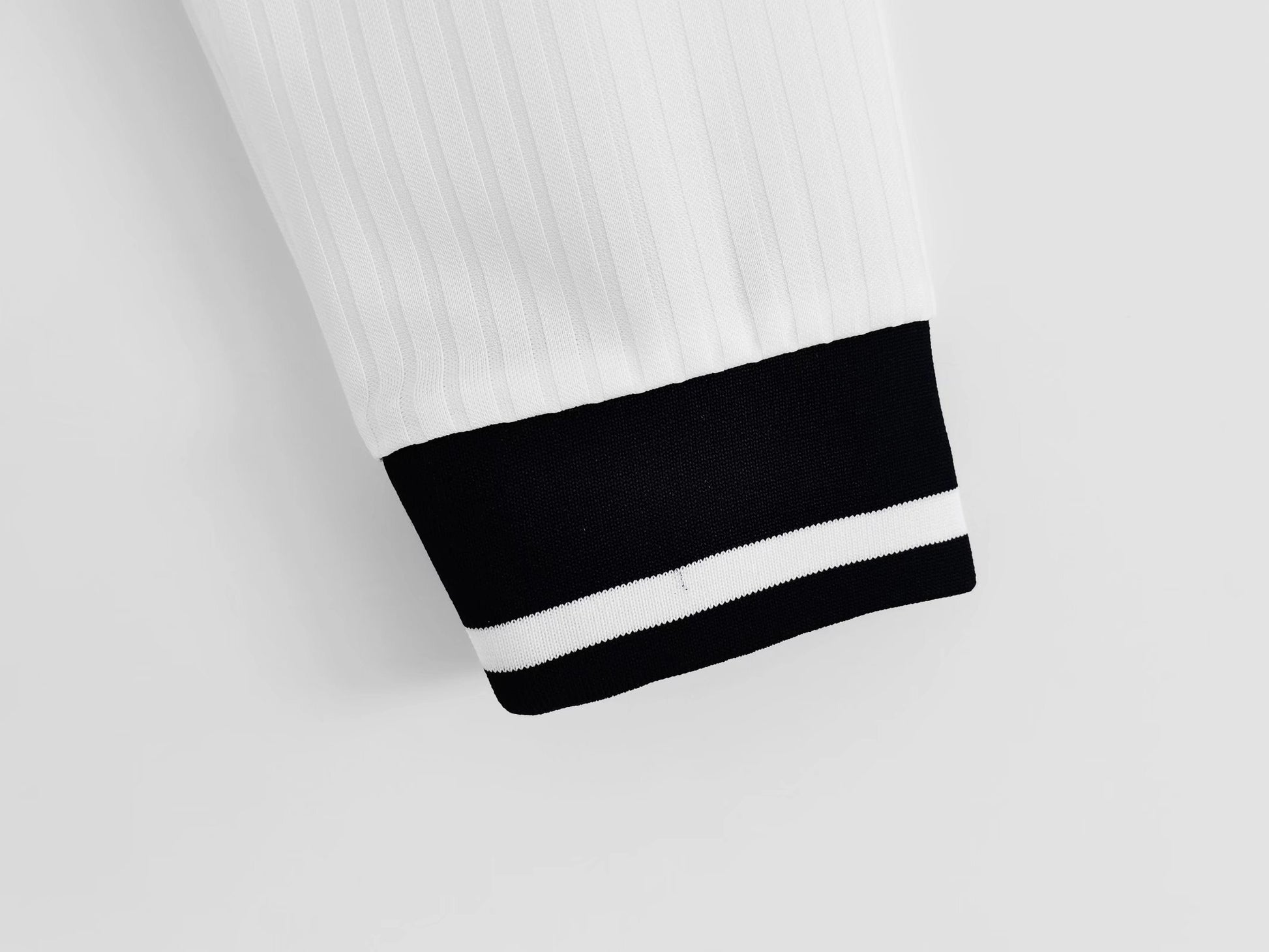 The 1998 England home jersey was a significant evolution from the 1996 design, worn during the 1998 FIFA World Cup in France. It retained the classic white base, but instead of simple red accents, it featured a modernized design with subtle grey pinstripes running vertically, giving the shirt more texture and a contemporary feel for the late ’90s. The Three Lions crest remained on the left chest, and the Umbro logo was on the right, now slightly larger and more prominent than in 1996.