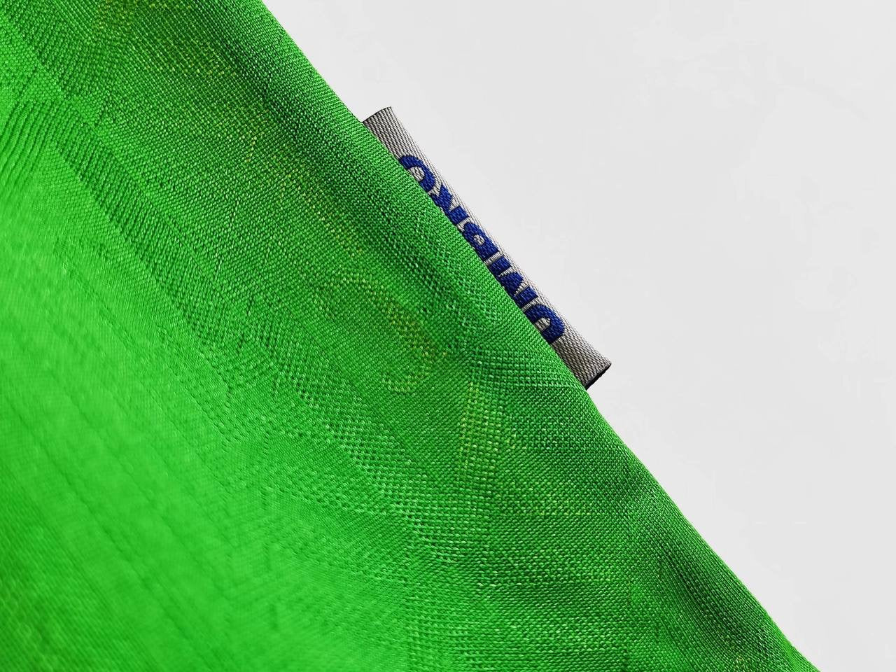 The 1992/94 Manchester United away kit, often referred to as the “half-and-half” kit, was a bold yellow and green shirt designed by Umbro and sponsored by Sharp. The shirt featured green on one half and yellow on the other, with a round collar and subtle paneling, paired with matching shorts and socks that complemented the vibrant design. Key players such as Ryan Giggs, Eric Cantona, Paul Ince, and Mark Hughes wore this kit during away matches in the Premier League and domestic cups. Its striking, unconventional color scheme made it one of United’s most memorable and daring away kits of the early 1990s.