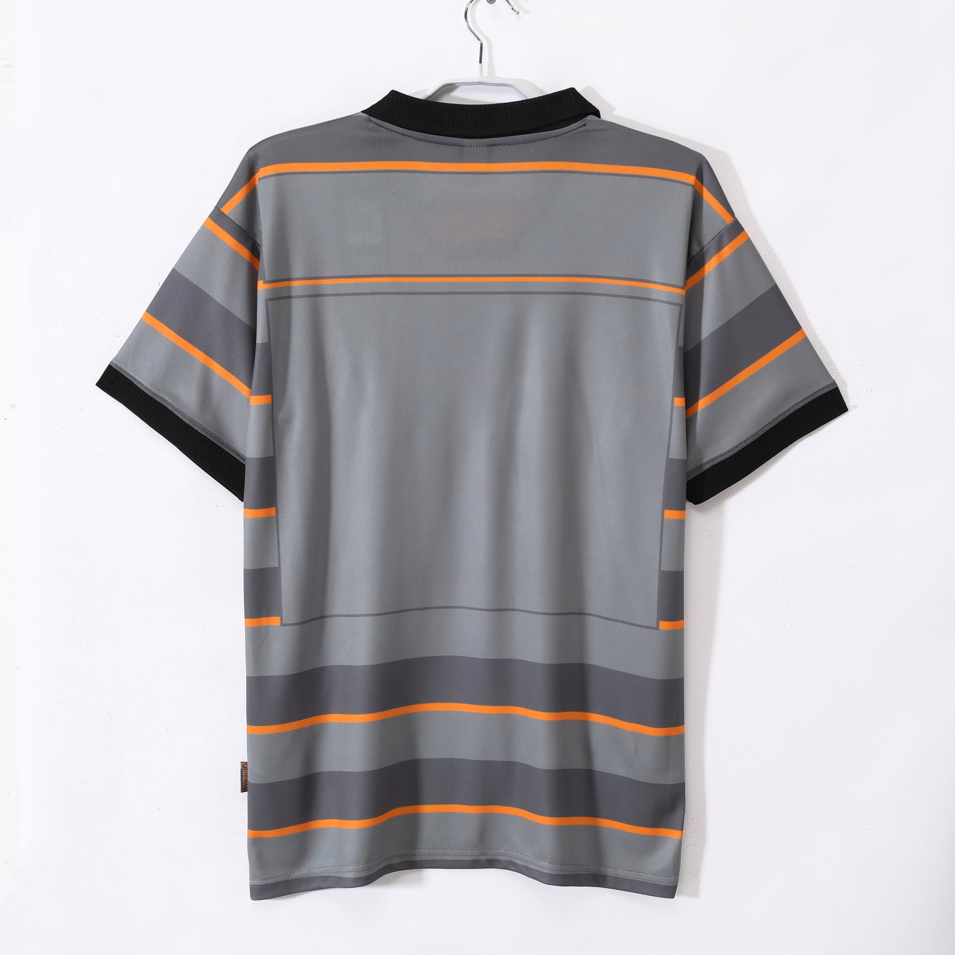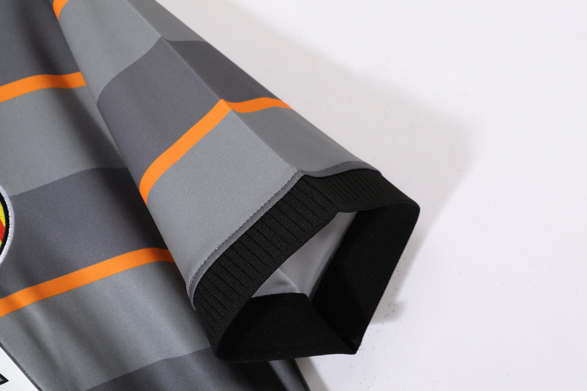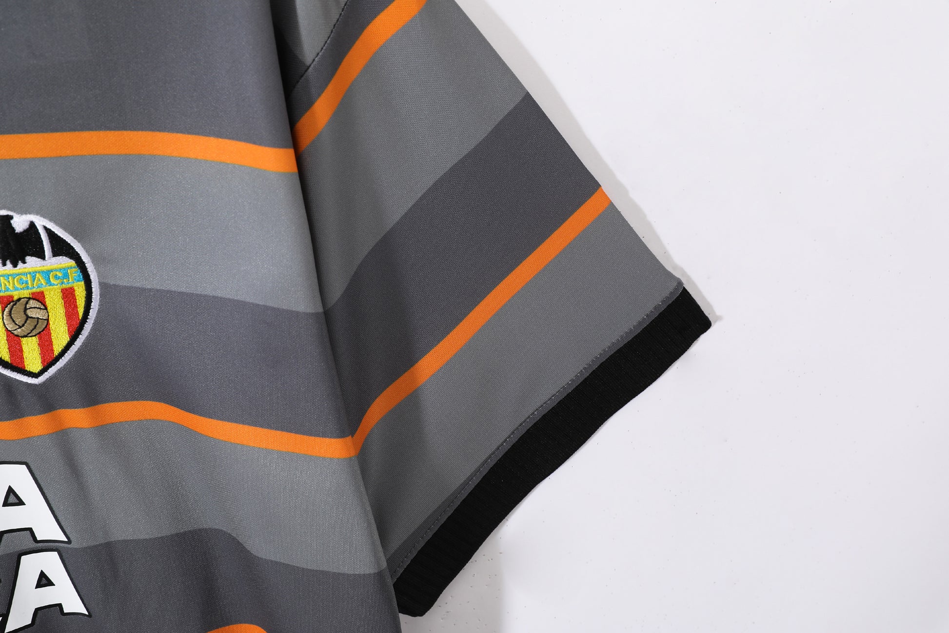 Alongside their white, black, and orange kits, Valencia had a striking grey alternate shirt with thin black vertical stripes, made by Nike and still carrying the Terra Mítica sponsor. It offered a more modern, European look, standing out from the cleaner home and away options. Worn occasionally in both La Liga and the Champions League, it was seen on players like Adrián Ilie, Kily González, and Rubén Baraja, adding variety to the squad’s wardrobe during their historic campaign that ended in the 2000 Champions League final.