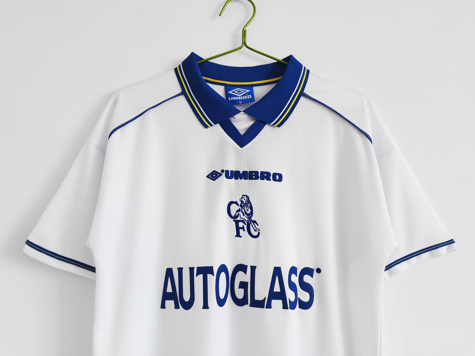 The 1998–2000 away kit is a bold and stylish design, featuring a striking yellow base with blue accents. Worn by stars like Gianfranco Zola, Dennis Wise, and Marcel Desailly, this jersey accompanied Chelsea during Premier League campaigns and domestic cup competitions. Its vibrant colorway and Umbro detailing make it one of the most memorable Chelsea away kits of the late 90s.