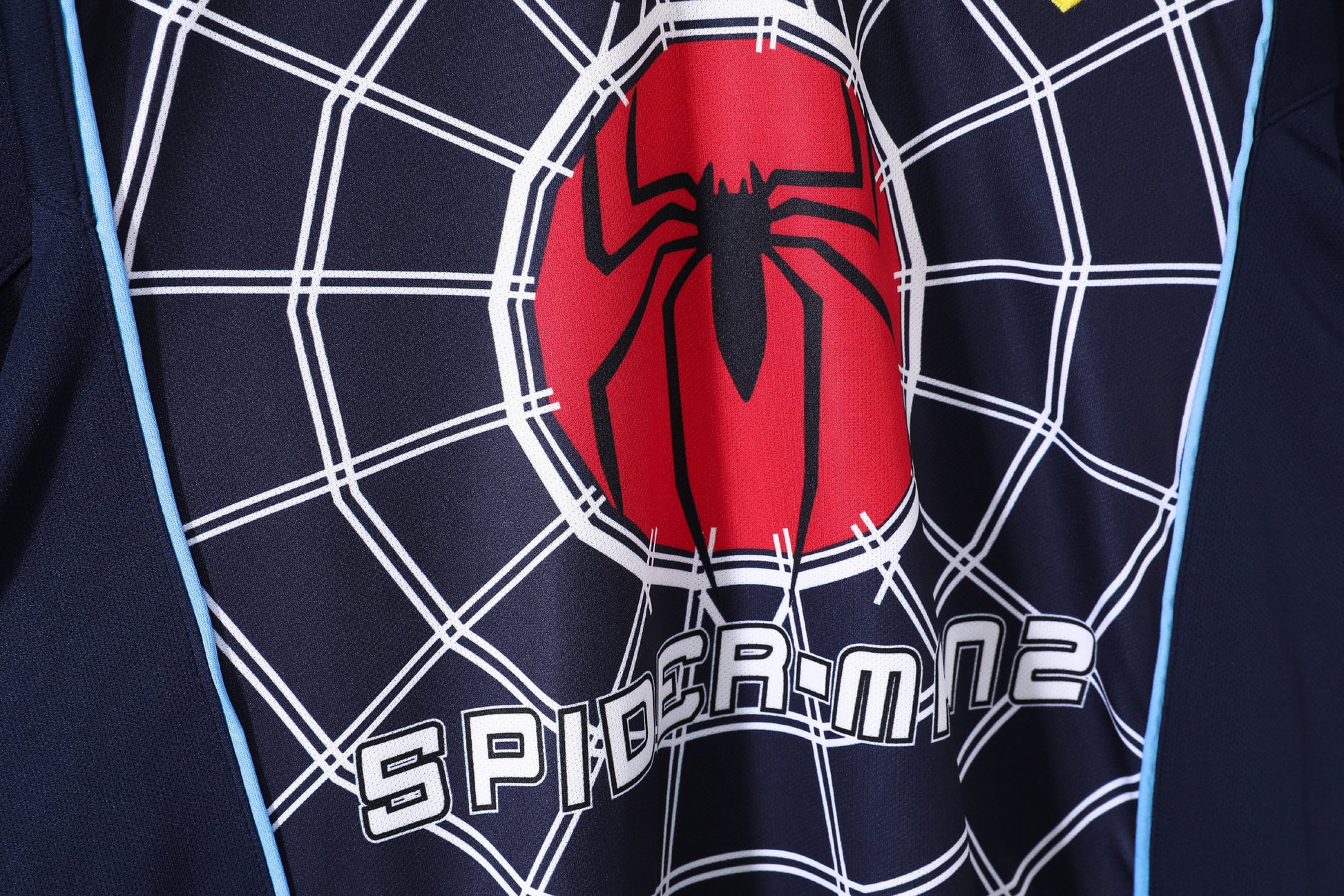 The away jersey was mainly navy blue with some red detailing. It carried the same striking Spider-Man 2 sponsorship, with the superhero logo stretched across the middle. The unusual movie tie-in made even the away shirt stand out, and it became quite collectible among football shirt enthusiasts.