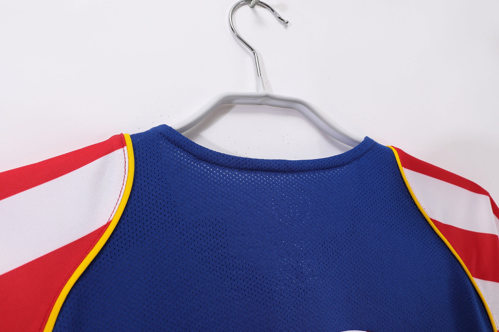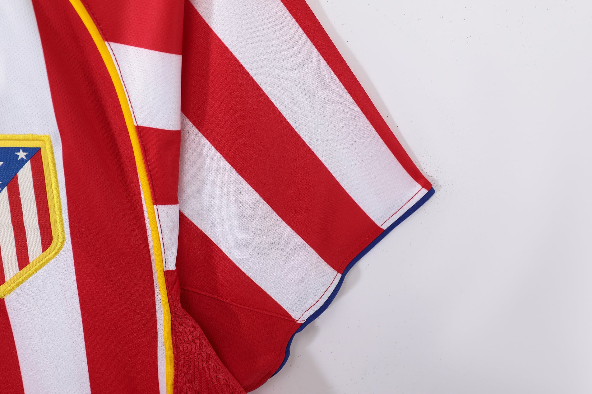 Atlético’s home shirt kept the classic red and white vertical stripes, with blue shorts and red socks. What made it unforgettable was the front sponsor: instead of a regular company, it featured a huge Spider-Man 2 movie logo across the chest in bold letters with the spider emblem, as part of a promotional campaign when the film was released. This unusual sponsor turned the kit into a cult classic, often remembered as one of the quirkiest football shirt designs of the 2000s.