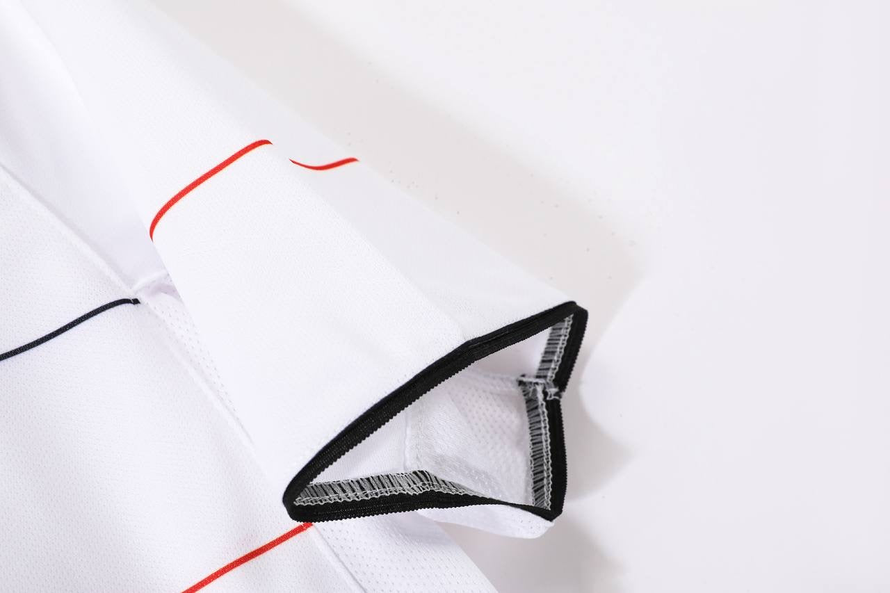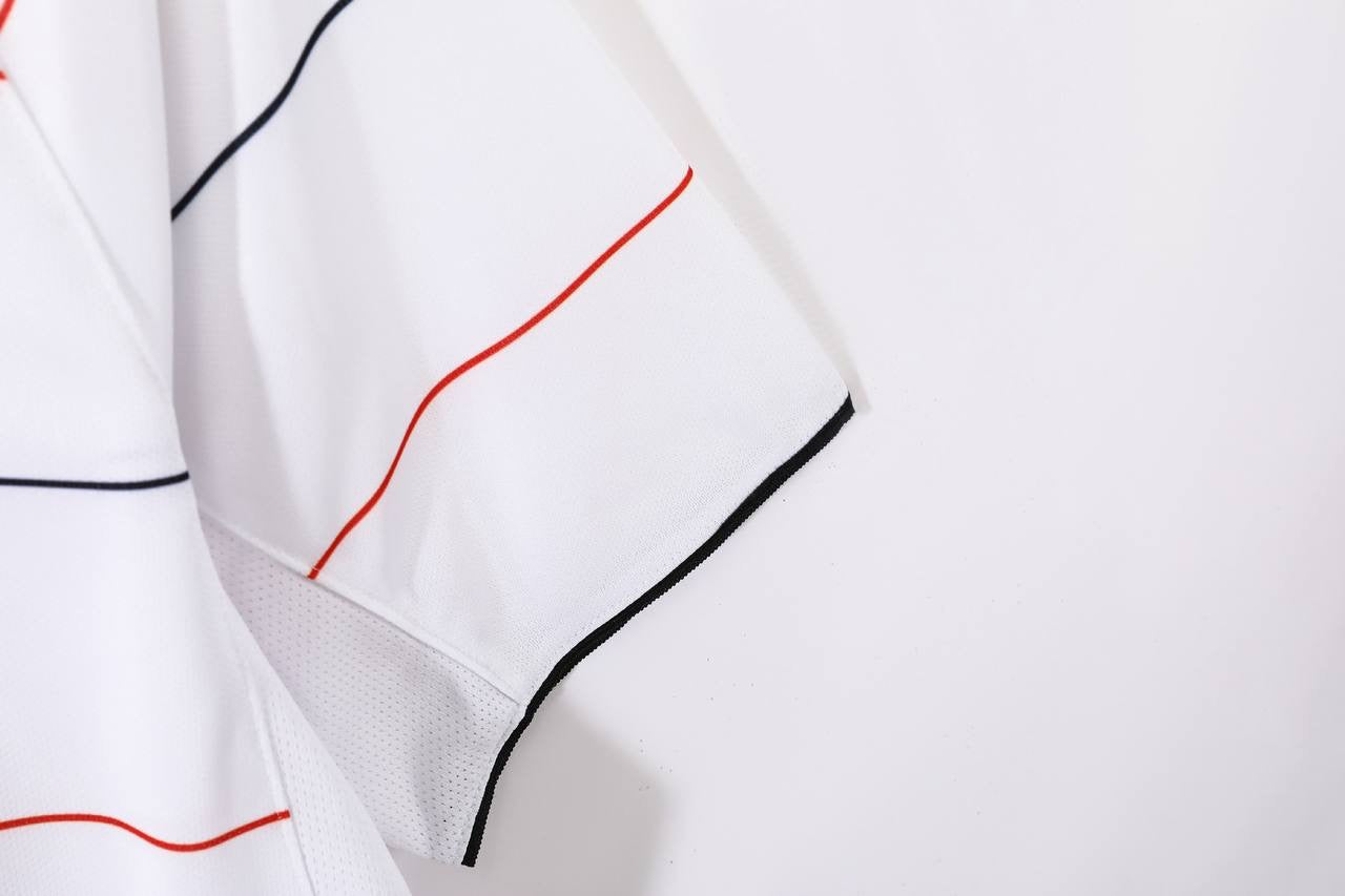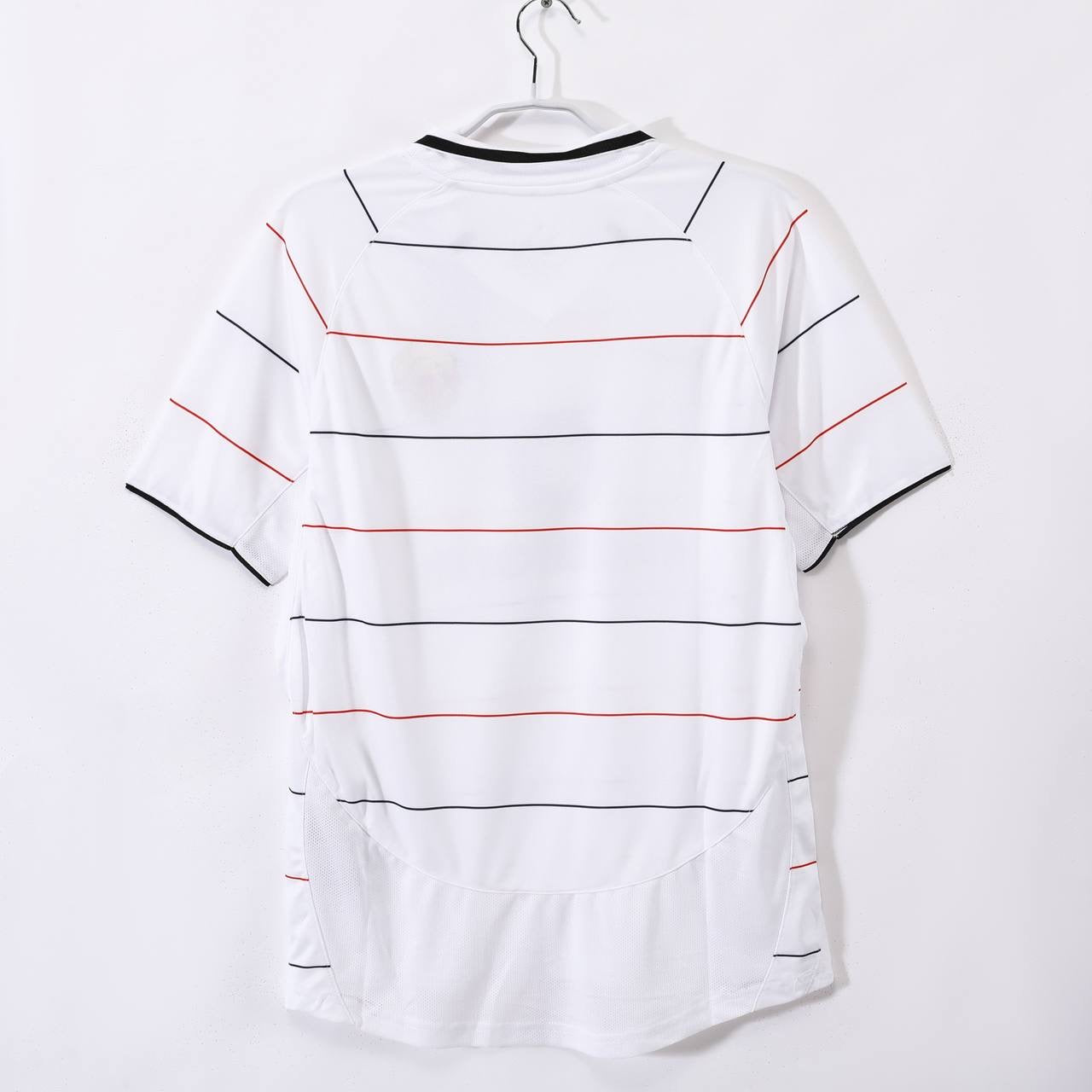 This kit was predominantly white with subtle tonal pinstripes, featuring a black round collar with red piping and the Vodafone sponsor across the chest. It was worn during the 2005/06 season, primarily in European away matches and some domestic cup fixtures.