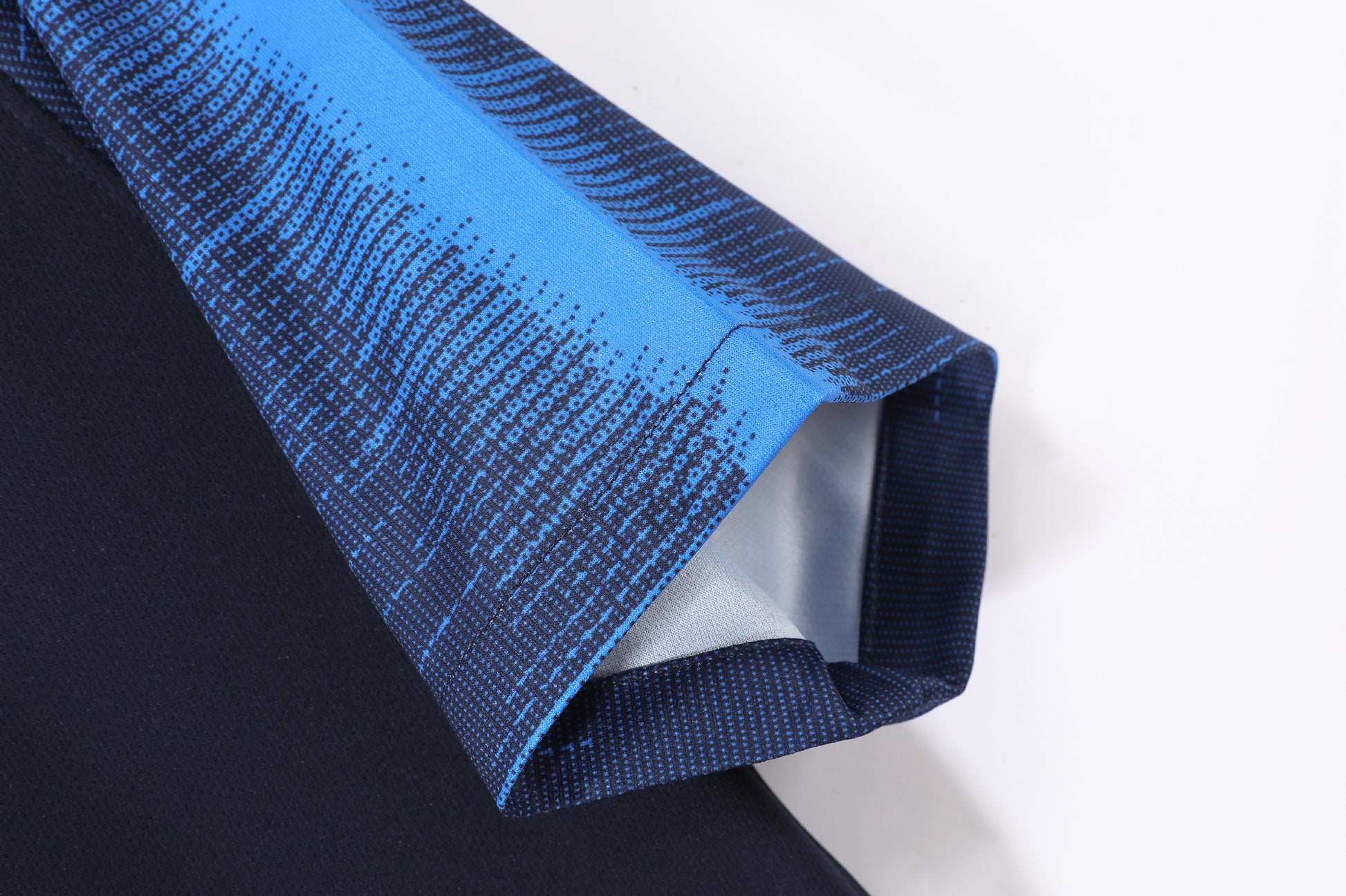 The 2018 France World Cup home shirt, Adidas again, features a classic deep blue base with a very subtle, embossed hexagonal pattern across the body, inspired by the French Republic’s symbol of unity. The FFF crest sits on the left chest, and Adidas stripes in red accent the shoulders. This kit is famous because France won the 2018 World Cup in Russia, with stars like Kylian Mbappé, Antoine Griezmann, and Hugo Lloris. Paired with white shorts and red socks, it embodies France’s modern take on their tricolor identity.
