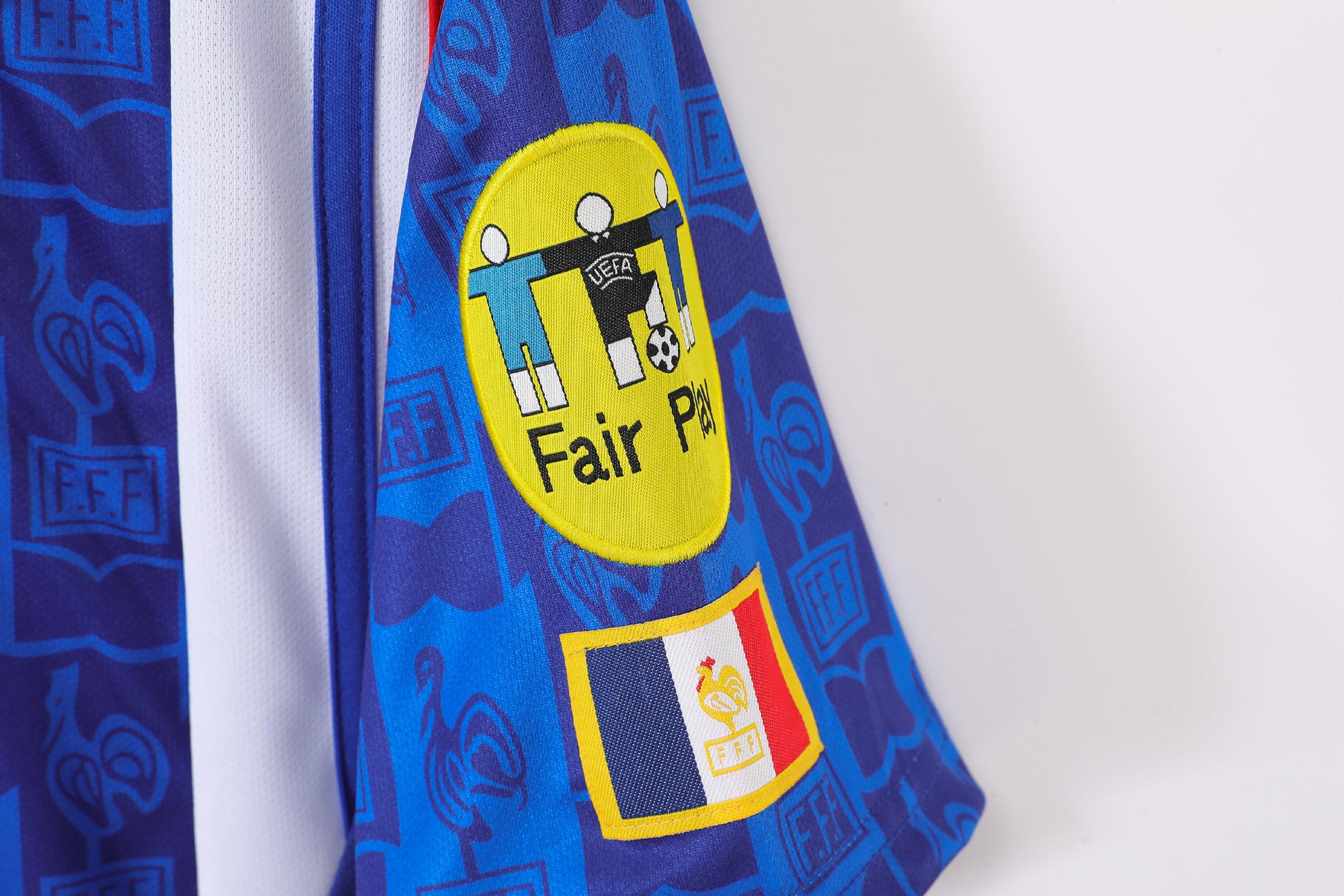 This kit was worn at Euro 1996 in England, where France reached the semi-finals, eventually losing to the Czech Republic on penalties. It’s closely associated with players like Zinedine Zidane (early in his France career), Laurent Blanc, Didier Deschamps, and Youri Djorkaeff.