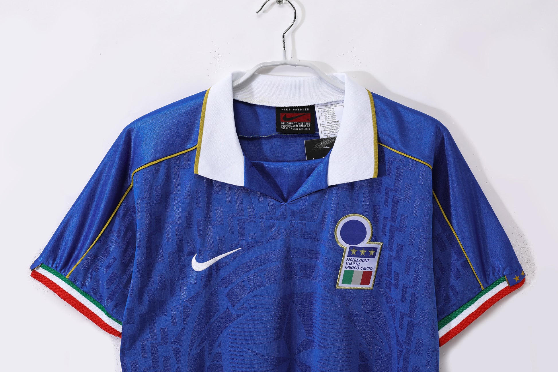 The 1995 home kit features Italy’s traditional royal blue base with white trim on the collar and cuffs, produced by Nike during their short partnership with the Azzurri. Worn by players such as Roberto Baggio, Paolo Maldini, and Alessandro Del Piero, this jersey marked a transitional period between the 1994 World Cup and the build-up to Euro 1996. Its classic design, combined with the rarity of Nike’s involvement with Italy, makes it a highly sought-after piece among fans and collectors.