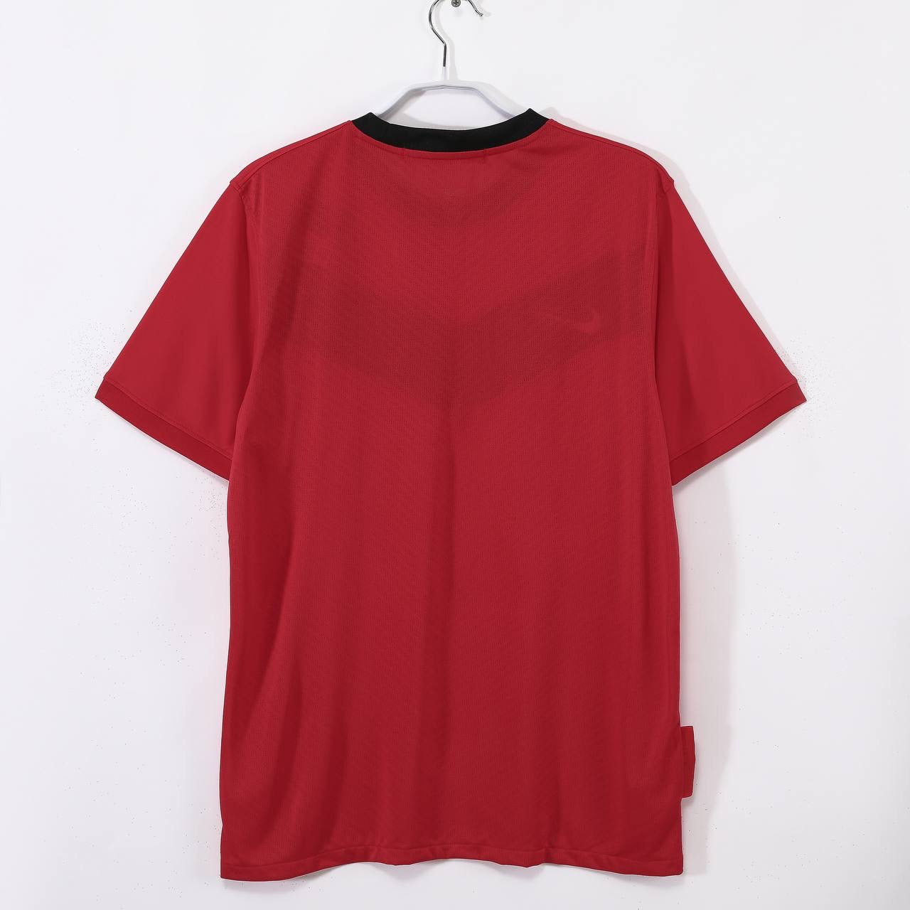 The 2009/10 Manchester United Home Jersey features the iconic red base with a subtle black chevron across the chest, giving the kit a bold, modern look. Worn by stars such as Wayne Rooney, Ryan Giggs, Paul Scholes, and Nemanja Vidić, this season marked United’s first campaign with AON as the main sponsor. Crafted with authentic colors and classic Nike styling, it embodies the pride, flair, and legacy of one of England’s most storied clubs.