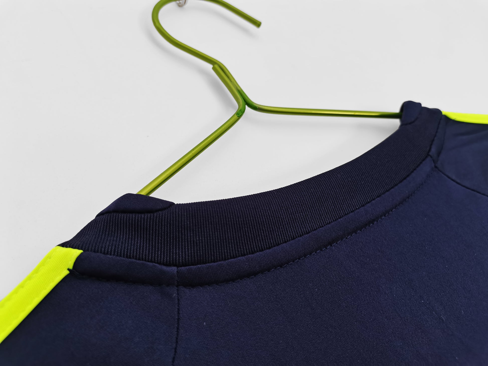 The away jersey was navy blue with neon green accents and bwin.com sponsor, worn by players like Benzema and Di María, and it gained visibility in Champions League away matches as Madrid again reached the semifinals before falling to Dortmund.