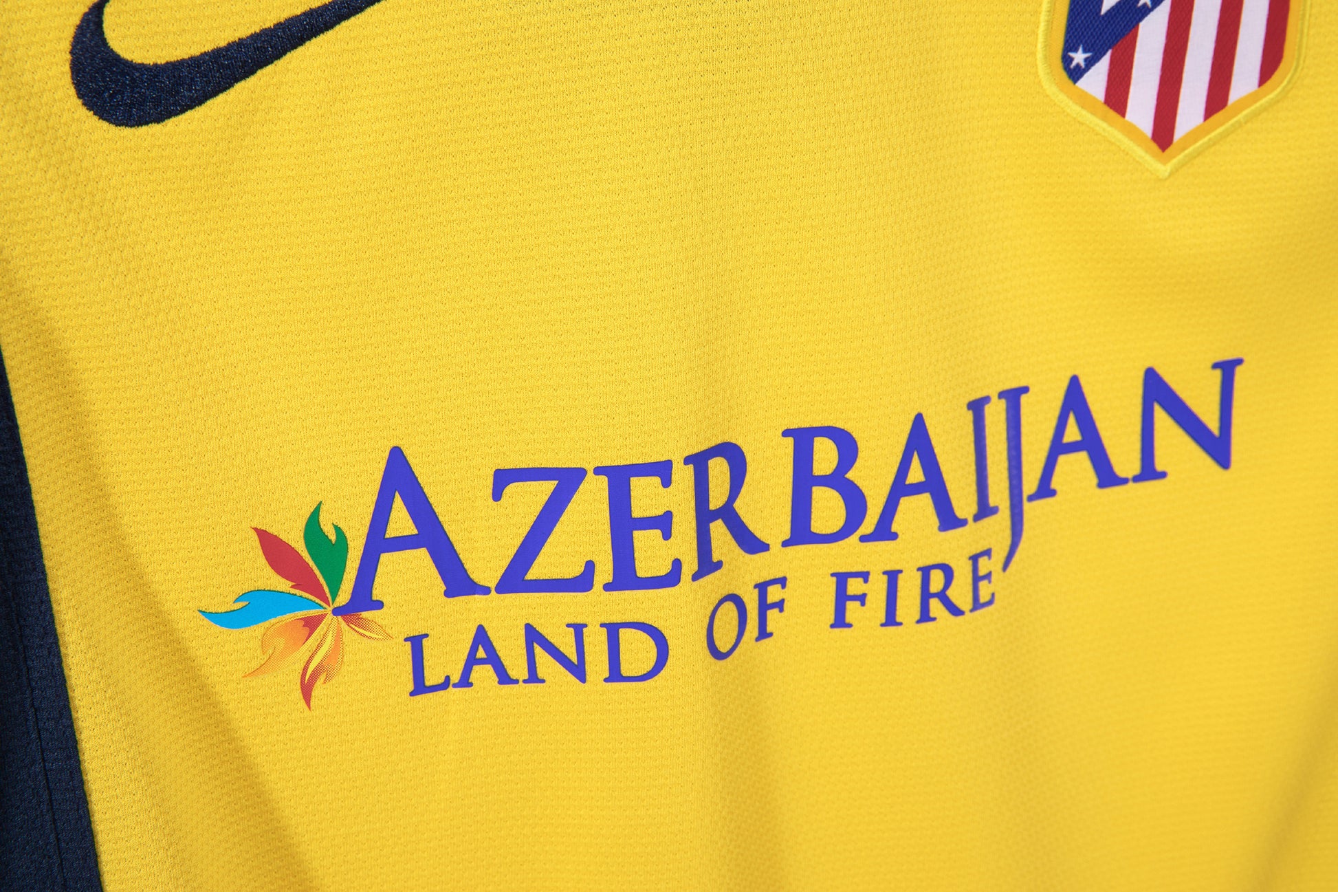 Atlético Madrid’s alternative kit for the 2013/14 season featured a vibrant yellow base with navy blue detailing on the sleeves, collar, and side panels, giving it a bold and modern appearance. The Nike logo and Azerbaijan Land of Fire sponsor appeared in navy blue, standing out clearly against the yellow background. The round-neck collar had a thin navy trim, and the shorts and socks were also yellow with navy accents, creating a cohesive and striking look. This kit was primarily worn in La Liga or European matches where both the home red-and-white and the black away kits clashed with the opponent’s colors, providing a high-contrast, eye-catching alternative.