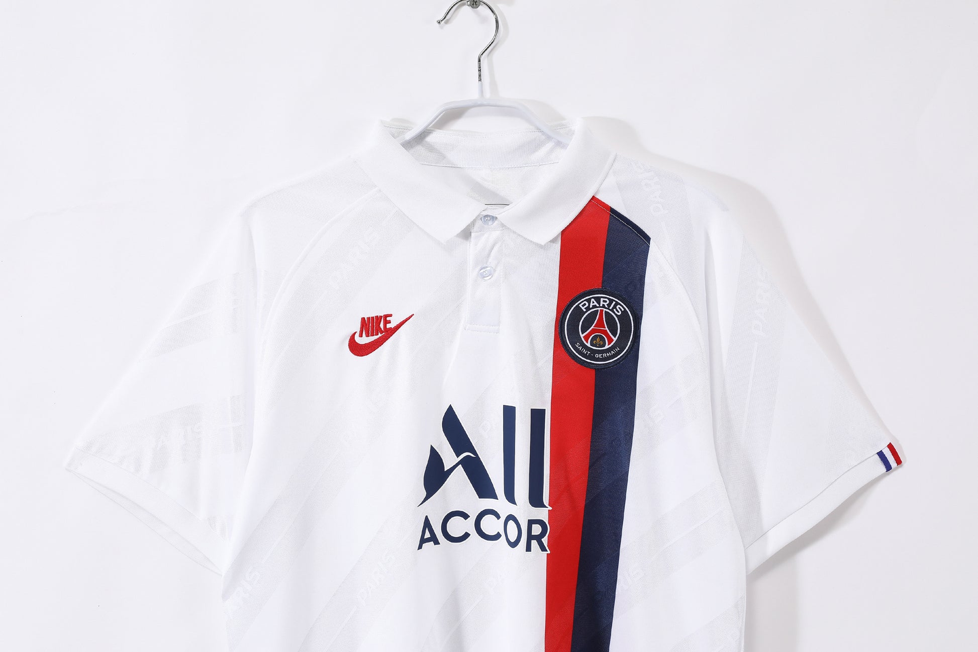 The 2019/20 away kit blends modern design with Parisian style, worn during a season when PSG dominated Ligue 1 and made a historic run to the UEFA Champions League final. Stars like Neymar, Kylian Mbappé, and Ángel Di María showcased their talent in this sleek, dark-colored shirt, making it a standout piece for fans of contemporary PSG football.