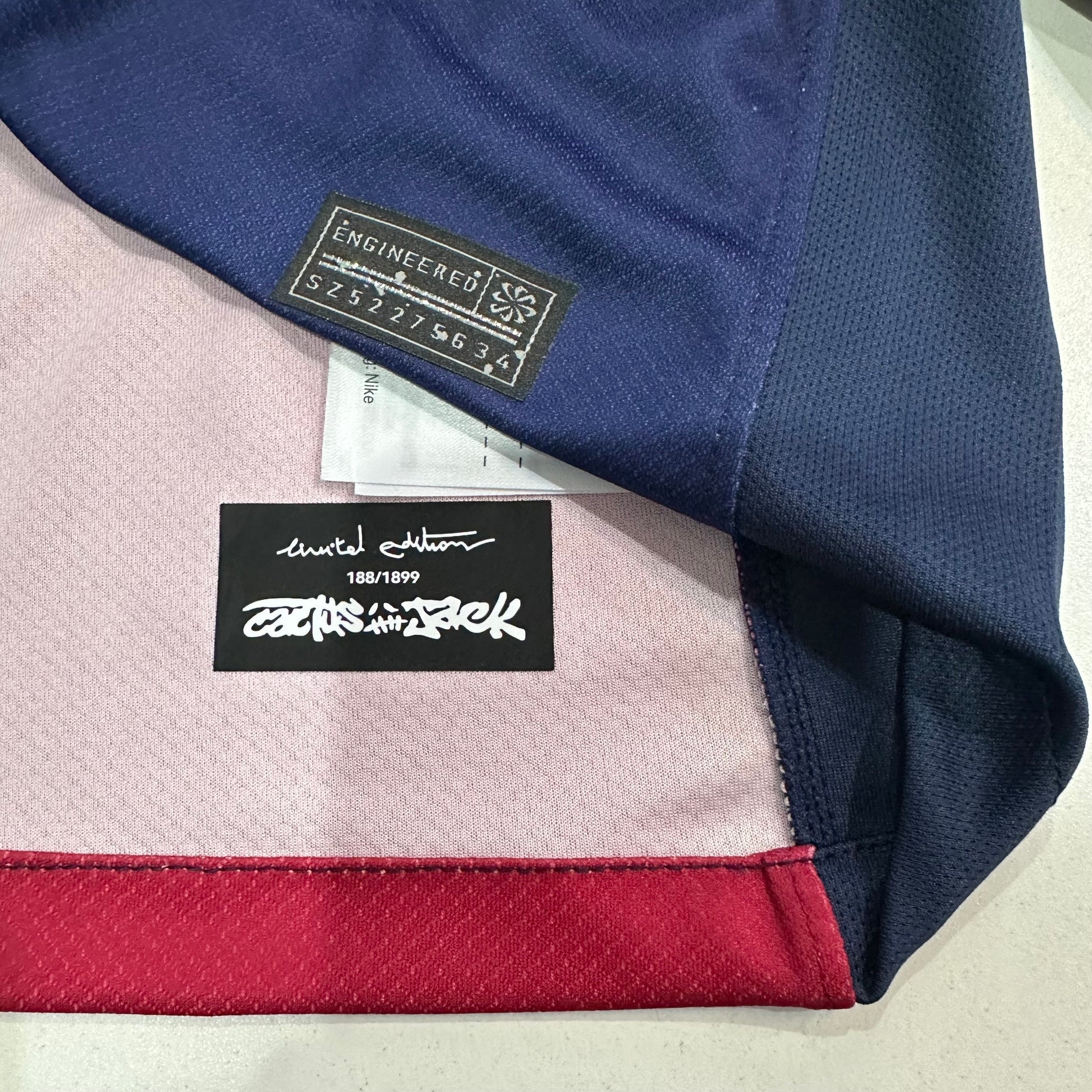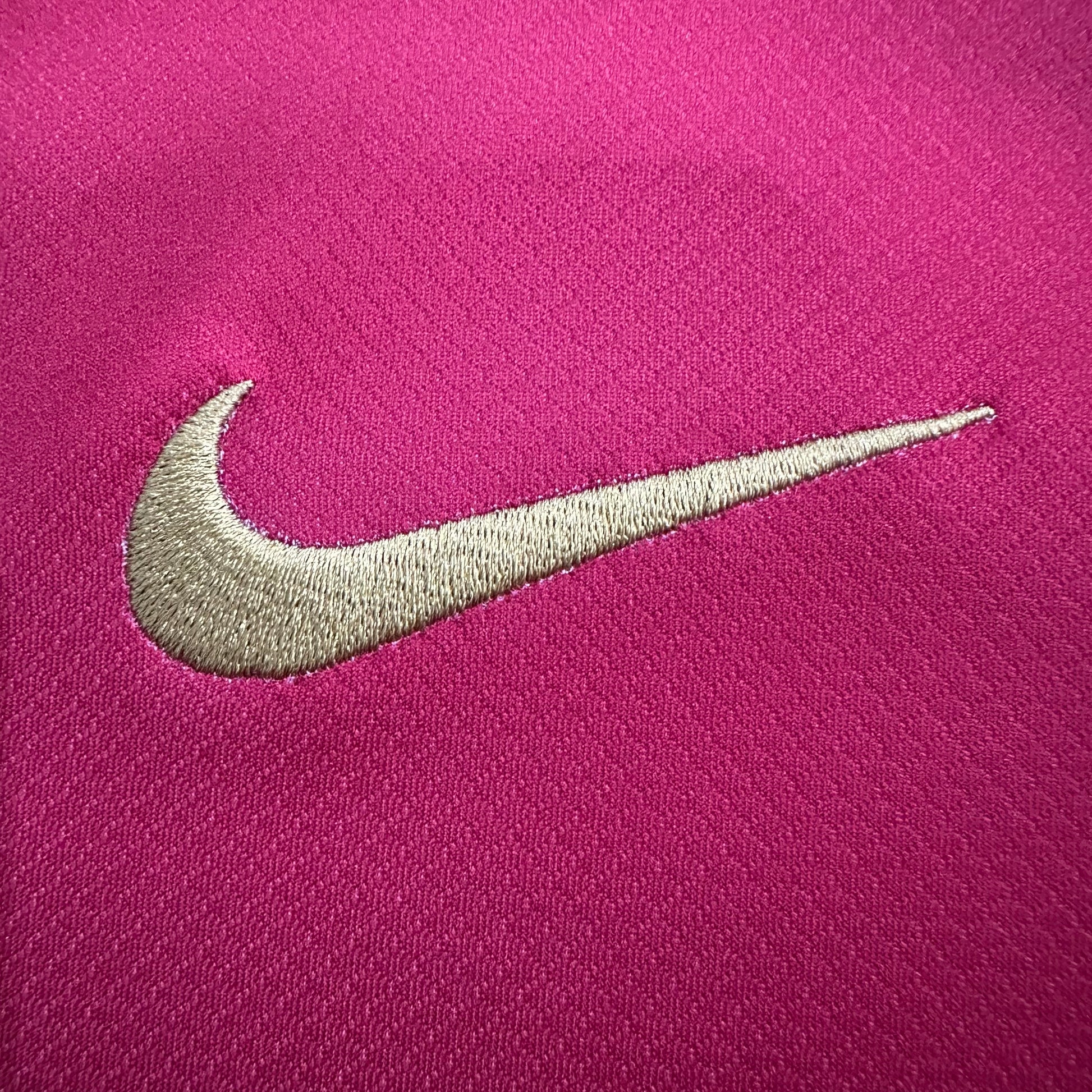 The 2024/25 Barcelona Travis Scott Home Kit is a limited-edition collaboration between Nike, FC Barcelona, and Travis Scott’s Cactus Jack brand. It keeps the club’s iconic blaugrana stripes but replaces the traditional sponsor with the bold Cactus Jack logo, blending football heritage with streetwear culture. Featuring Dri-FIT ADV technology for comfort and performance, this rare collector’s piece was worn in El Clásico 2025, making it one of the most unique and sought-after Barça jerseys in recent history.