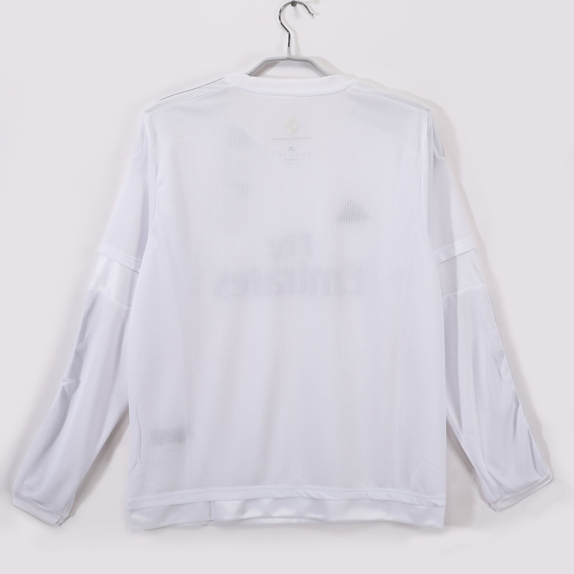 This long-sleeve shirt features the iconic design of the 2015/16 Real Madrid home kit, expertly crafted to combine official team aesthetics with comfort. Made with breathable fabric, it offers a snug fit ideal for cooler weather while showcasing the classic all-white look synonymous with one of football’s greatest eras. Perfect for collectors and fans who appreciate authentic detail and superior quality in their team apparel.